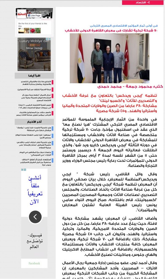 Mısır’ın ulusal medyasında, “Mısır’da Yatırım Yapan İş Adamı” başlığıyla yer aldık.